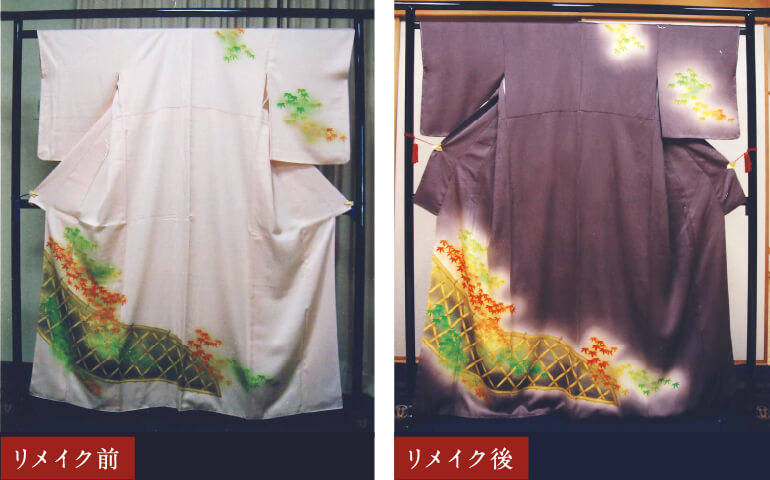 派手になったきものの柄も、色挿しまたは箔加工しておさえめに調整することもできます。